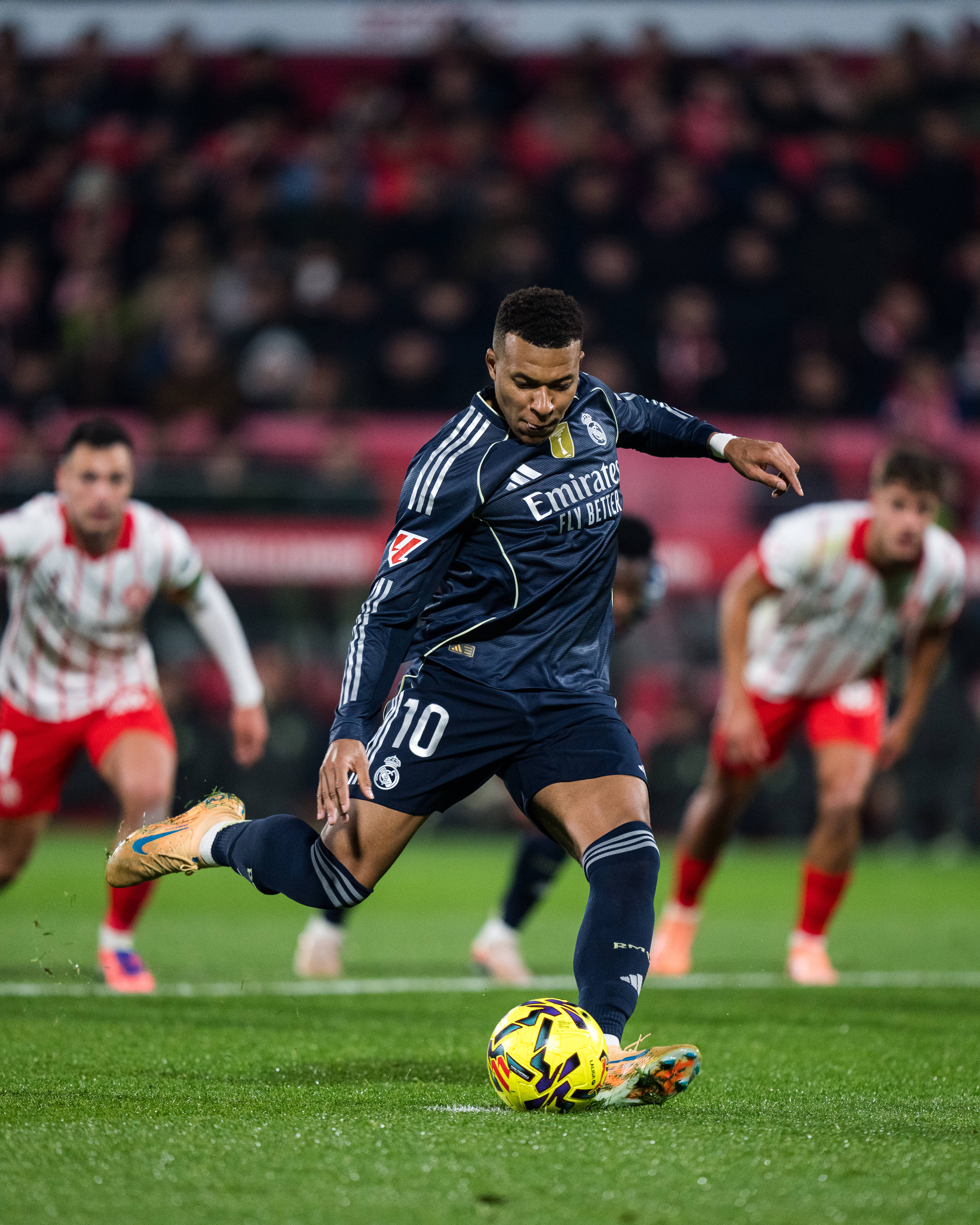 11月30日,皇家马德里队球员姆巴佩在比赛中主罚点球命中。新华社发(胡安·戈萨摄)