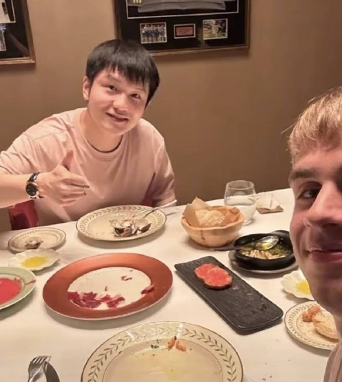两人的友谊跨越了赛场胜负。2024年巴黎奥运会男单决赛,樊振东夺冠后与莫雷加德拥抱交换球衣;一年后,他们在北京聚餐合影,莫雷加德亲切称呼对方“我的朋友”。这种惺惺相惜促成了职业联袂:2025年樊振东加盟德国萨尔布吕肯俱乐部,与莫雷加德成为队友。